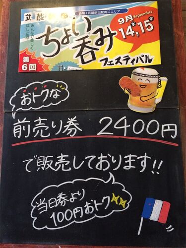 14日(水).15日(木)の夜にちょい呑みフェスティバルに参加のため、 12日(月)はお休みさせていただきます。 ご了承ください。 ちょい呑み前売り券、販売しております!