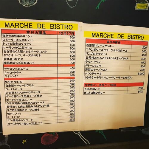 マルシェドビストロOPEN おはようございます☀2017年最後のマルシェとなります! ✨毎週 日曜日 恒例のマルシェ✨12月17日(日)11時15分頃から店頭にて開催します! 今日のおすすめは ○タコとオリーブ、チーズのマリネ○ジビエ肉のパテ○さつまいものムース○ウサギ…