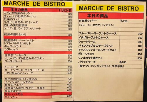 マルシェドビストロOPEN 毎週 日曜日 恒例のマルシェ 11月24日(日) 11時15分頃から店頭にて開催いたします! ✨本日のおすすめ✨ ○ジビエ(鹿)のパテアンクルート ○国産鶏のレバーペースト ○トリッパのトマト煮込みグラタン ○鴨クロケット ○国産鶏もも肉とトマ…