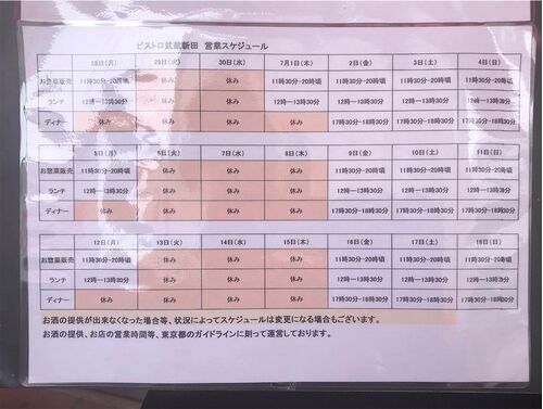 7月5日(月) *店内にてお惣菜販売 (1130〜2100頃) *ランチ1200〜1430(1330L.O.) *ディナー お休み 6日(火)〜8日(木)はお休みいたします 酒類は都の要請に従って提供いたします。ご確認ください。 ・提供時間 12時~19時 ・90分以内 ・1グループ大人は2名以…