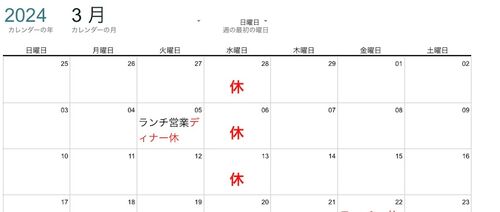 2月27日(火) 3月の営業カレンダーです。 17日以降はまだ未定となっております。 ご迷惑おかけしますが、よろしくお願いします。 LINEのポイント付与は終了いたしました。 発行されたクーポンは3月15日までお使いいただけますので、忘れずにご利用ください! …